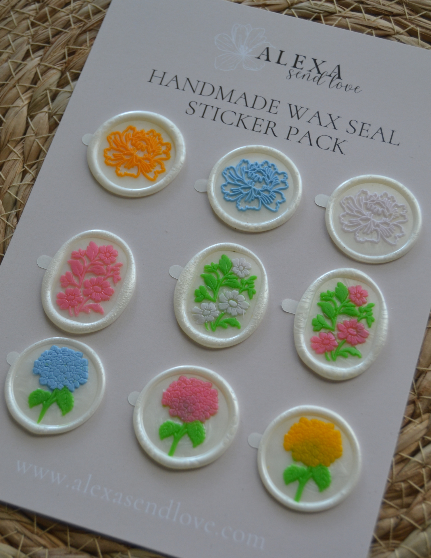 Handcrafted wax seals with an easy peel-and-stick backing — the perfect finishing touch for envelopes and thoughtful packaging.